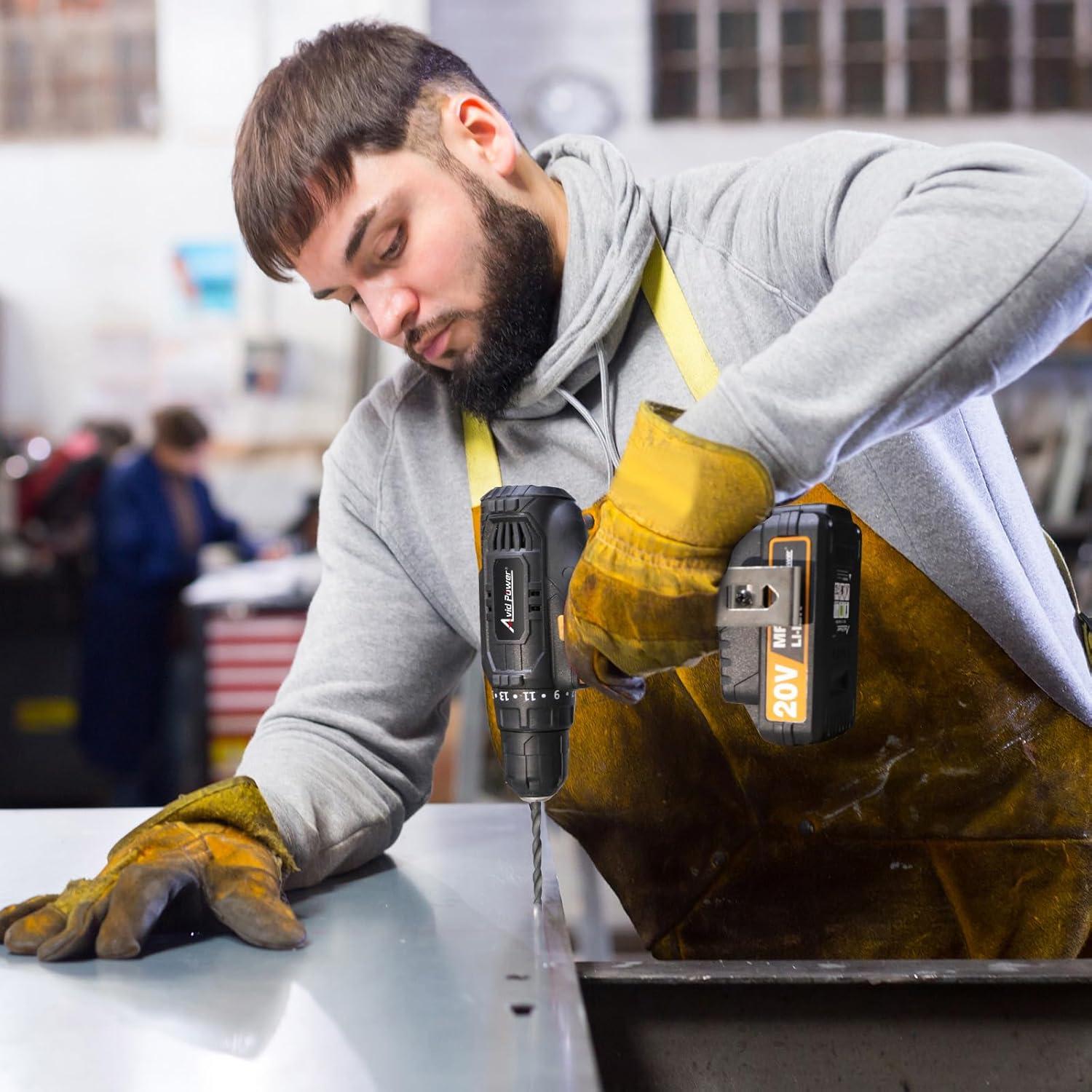 Powerful Battery Pack: The Avid power 20V Cordless Drill Set is supplied with a powerful Lithium-Ion battery which allows for more power and up to 25% more run time than a standard battery, no self-discharge, and is always ready for use