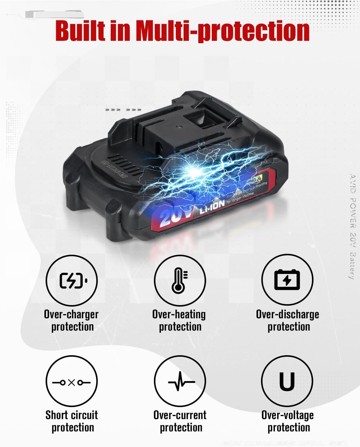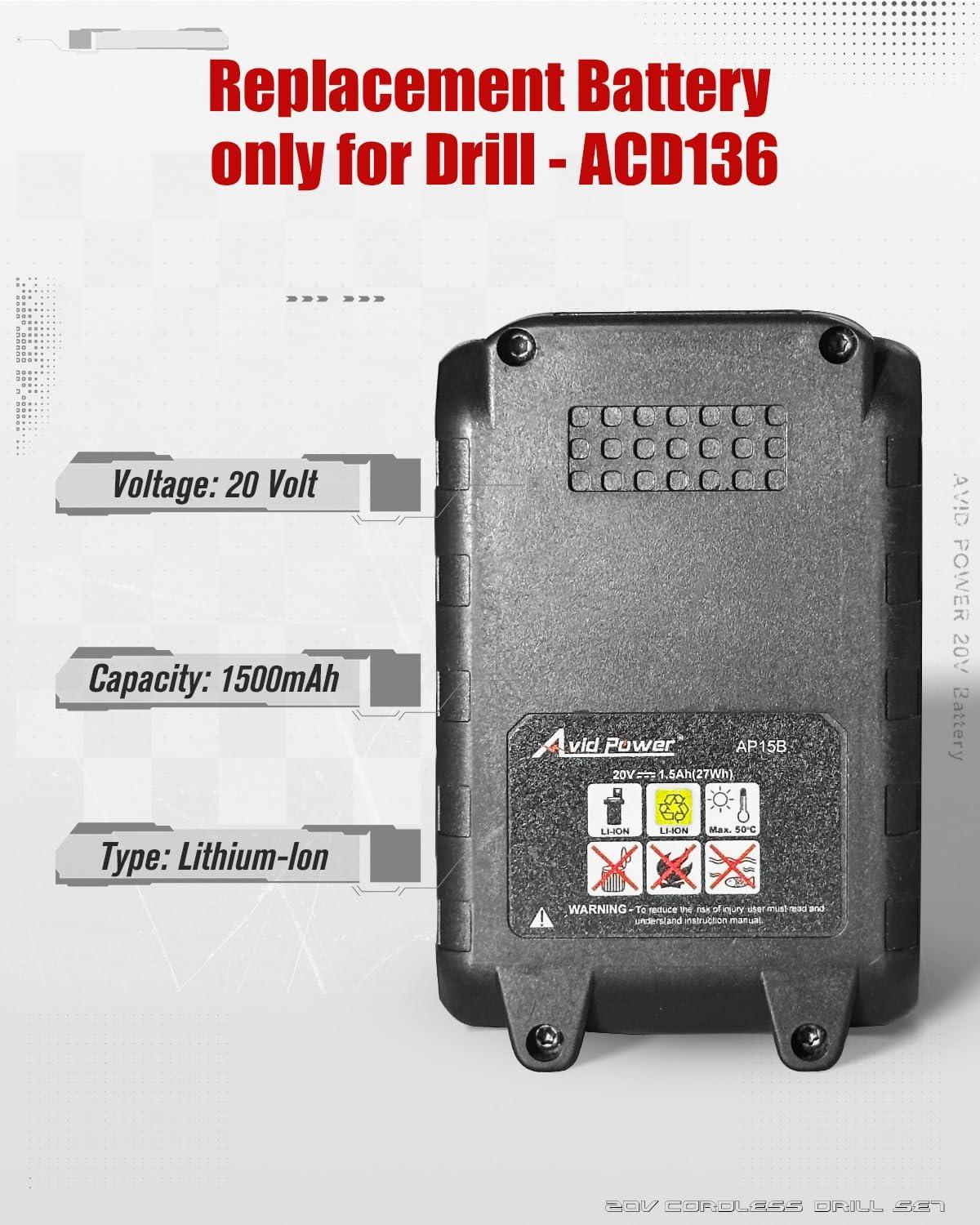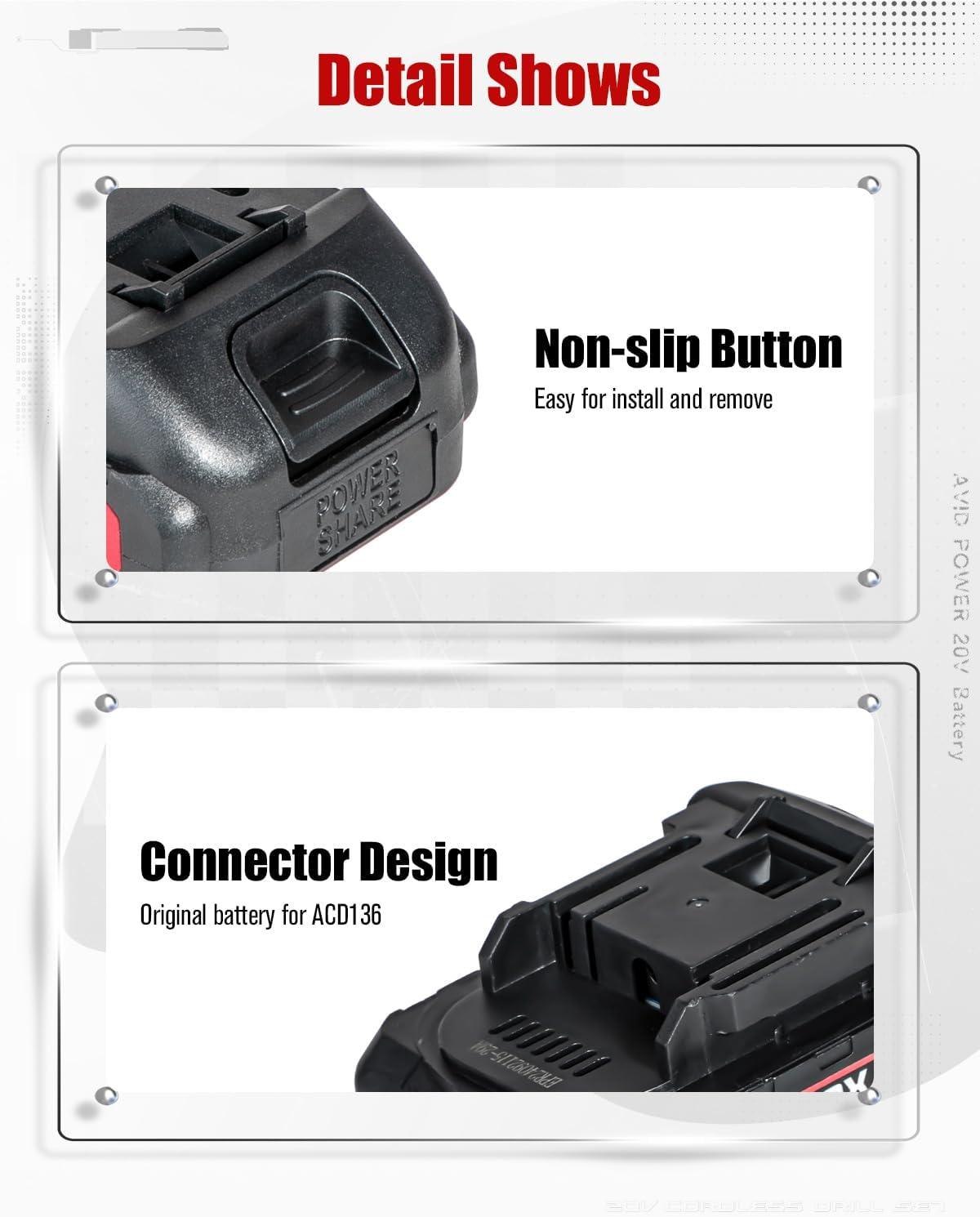 Note: Only Compatible with drill – ACD136, not compatible with other AVID POWER's 20V tool. Not Compatible with any machines from Dewalt, BLACK+DECKER, CRAFTSMAN, RYOBI, WORKPRO, Milwaukee, Makita, Bosch and so on