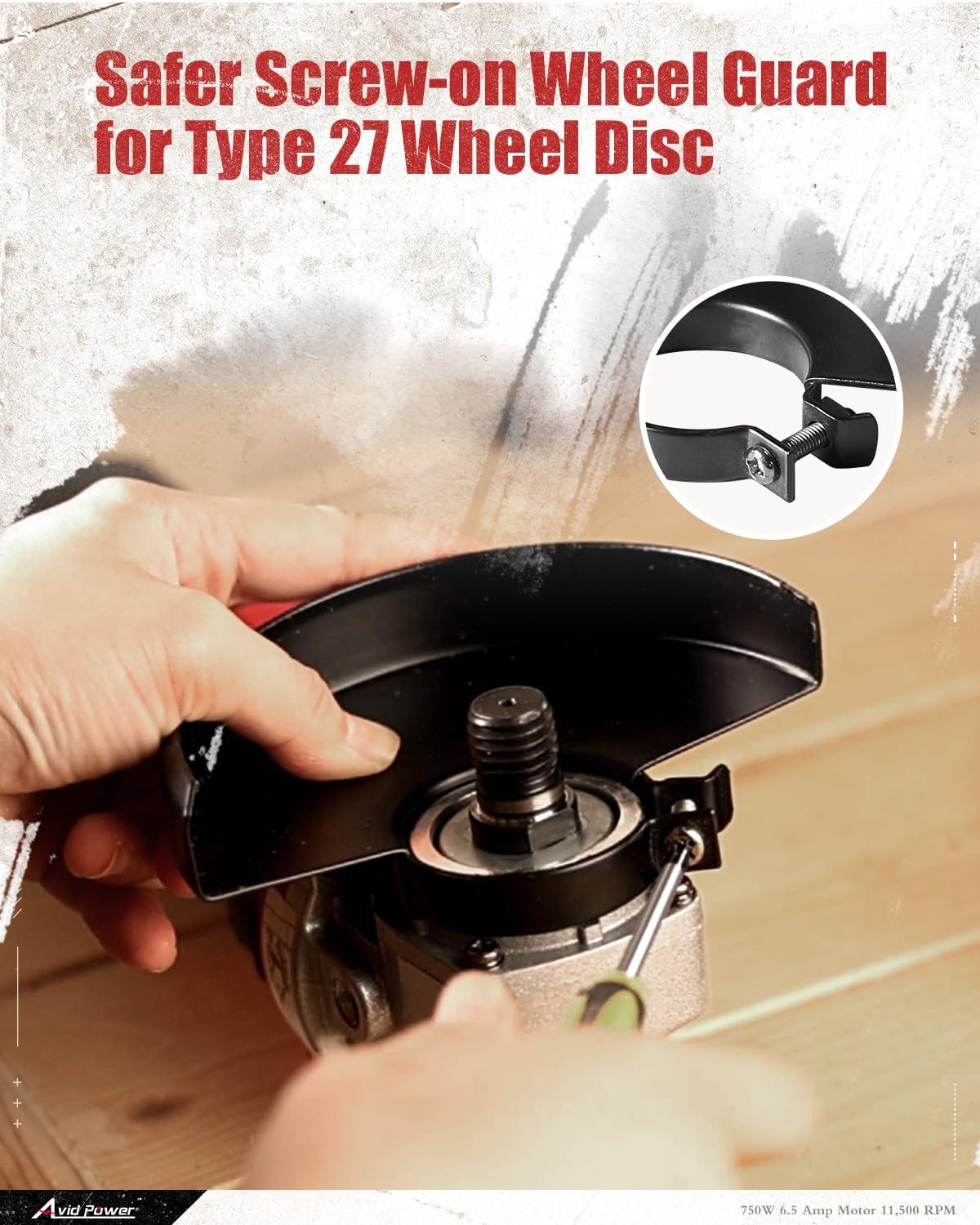 Screw-on Guard for Safety & Side Handle for Added Control: Wheel guard can be adjusted with screwdriver (NOT included) to angles to prevent from injury. 2-position handle is friendly for left & right hands to grip. Side grinder weighs only 3.20lbs, less fatigue & comfortable in prolong use