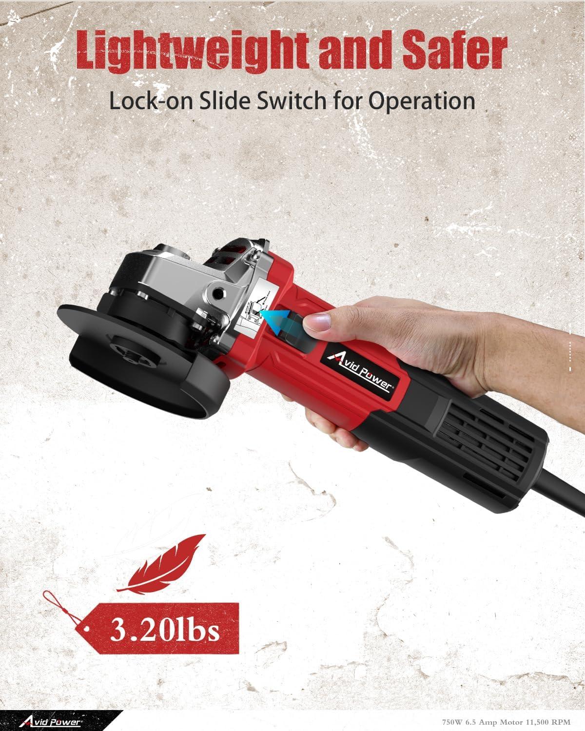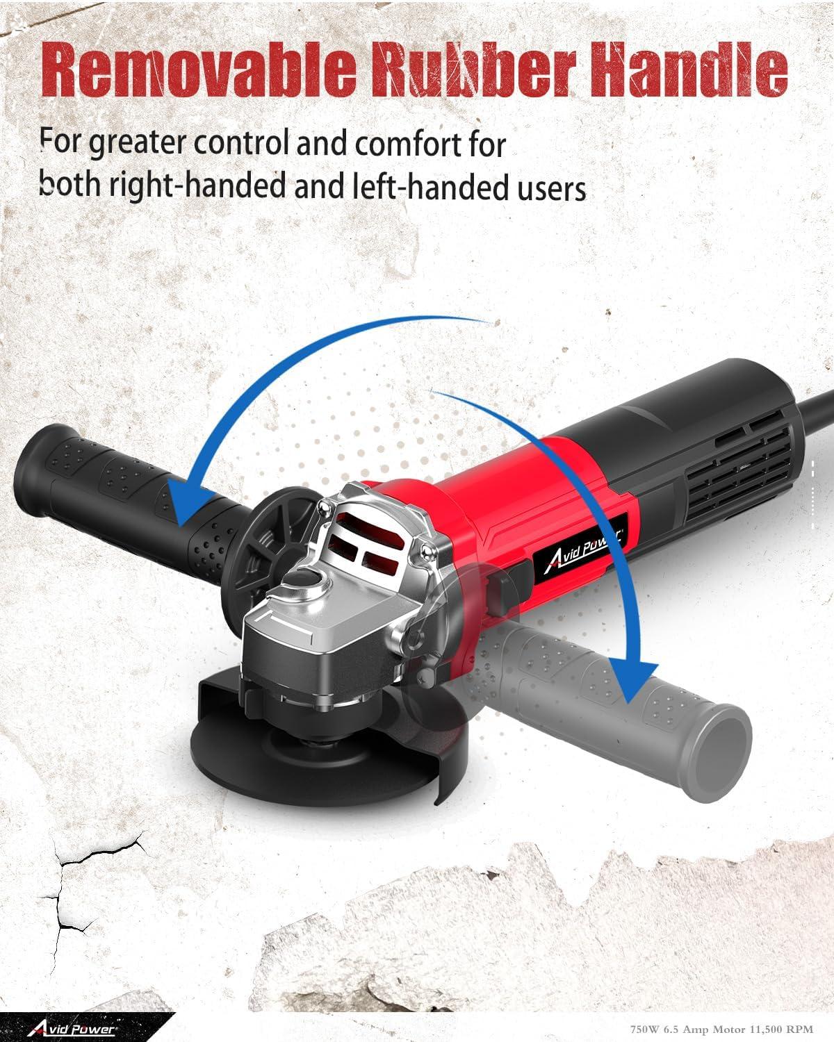 imageAVID POWER Angle Grinder 412 inch Electric Grinder Tools 750W 65 Amp Metal Grinder 11500 RPM with Grinding and Cutting Wheels Auxiliary Handle Wrench for Cutting and Grinding