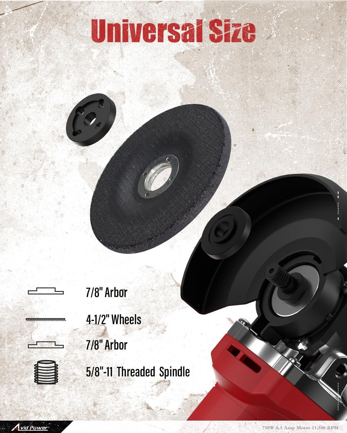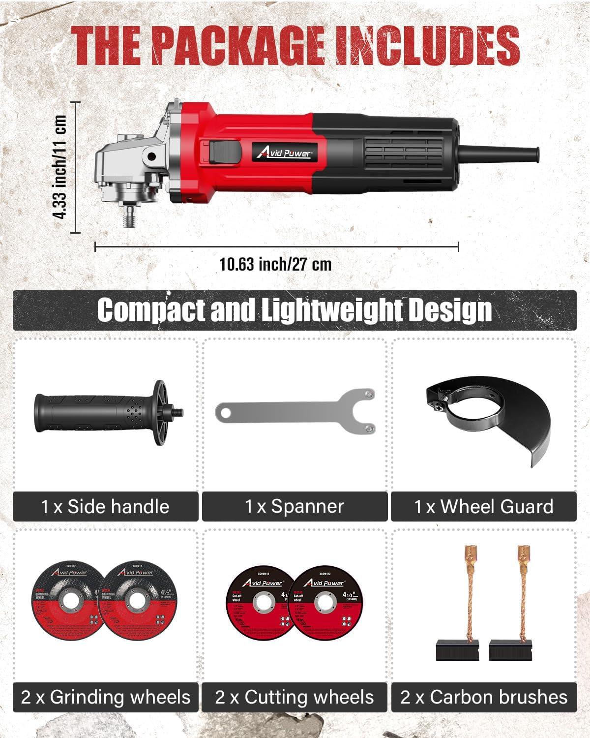 AVID POWER Angle Grinder 4-1/2 inch Electric Grinder Tools 750W 6.5 Amp Metal Grinder, 11500 RPM, with Grinding and Cutting Wheels, Auxiliary Handle, Wrench for Cutting and Grinding