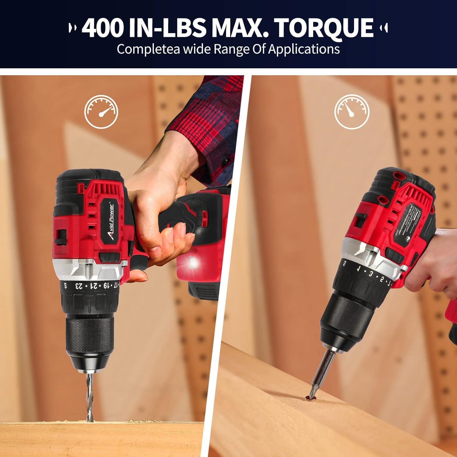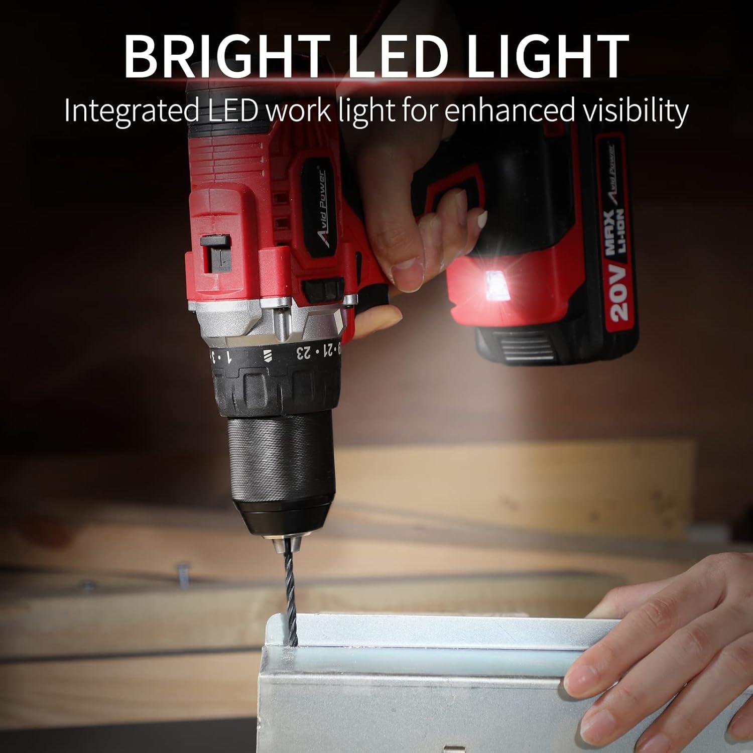 [23+1 Torque Setting]: AVID POWER 20V cordless drill equipped with a powerful brushless motor, variable speed up to 1700 RPM, 23+1 torque setting delivers precise control, very suitable for drilling wood, metal, plastic, and all screwdriver tasks