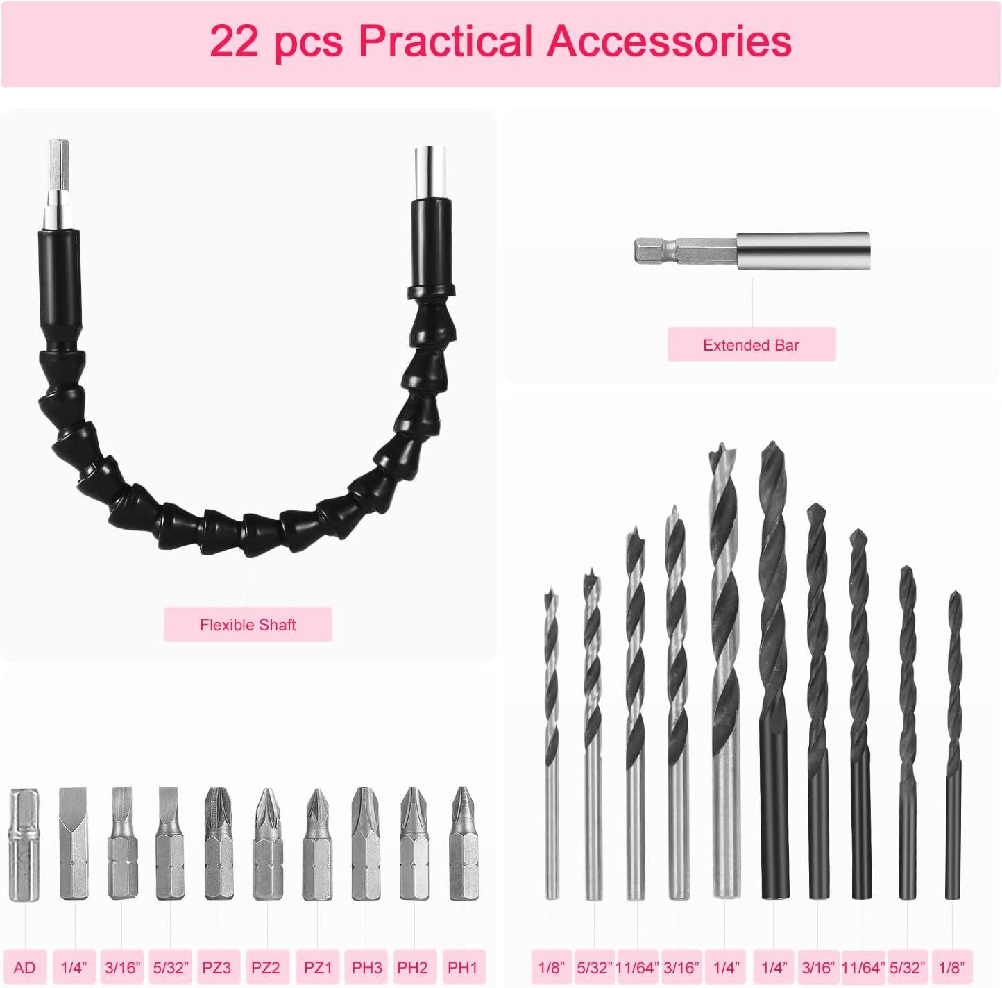【Your Reliable Drill Set】 This cordless drill set comes with 10 drill bits in different sizes which are commonly used during DIY jobs and house repair jobs. Therefore,no more hesitation, just start your job as soon as you get the drill set. Accessories included: 1x 12V drill, 1x 2.0Ah rechargeable battery, 1x 12V battery charger, 10x drill bits, 10x driver bits, 1x extension bar and 1x flexible shaft. Note: tool case or bag is not included