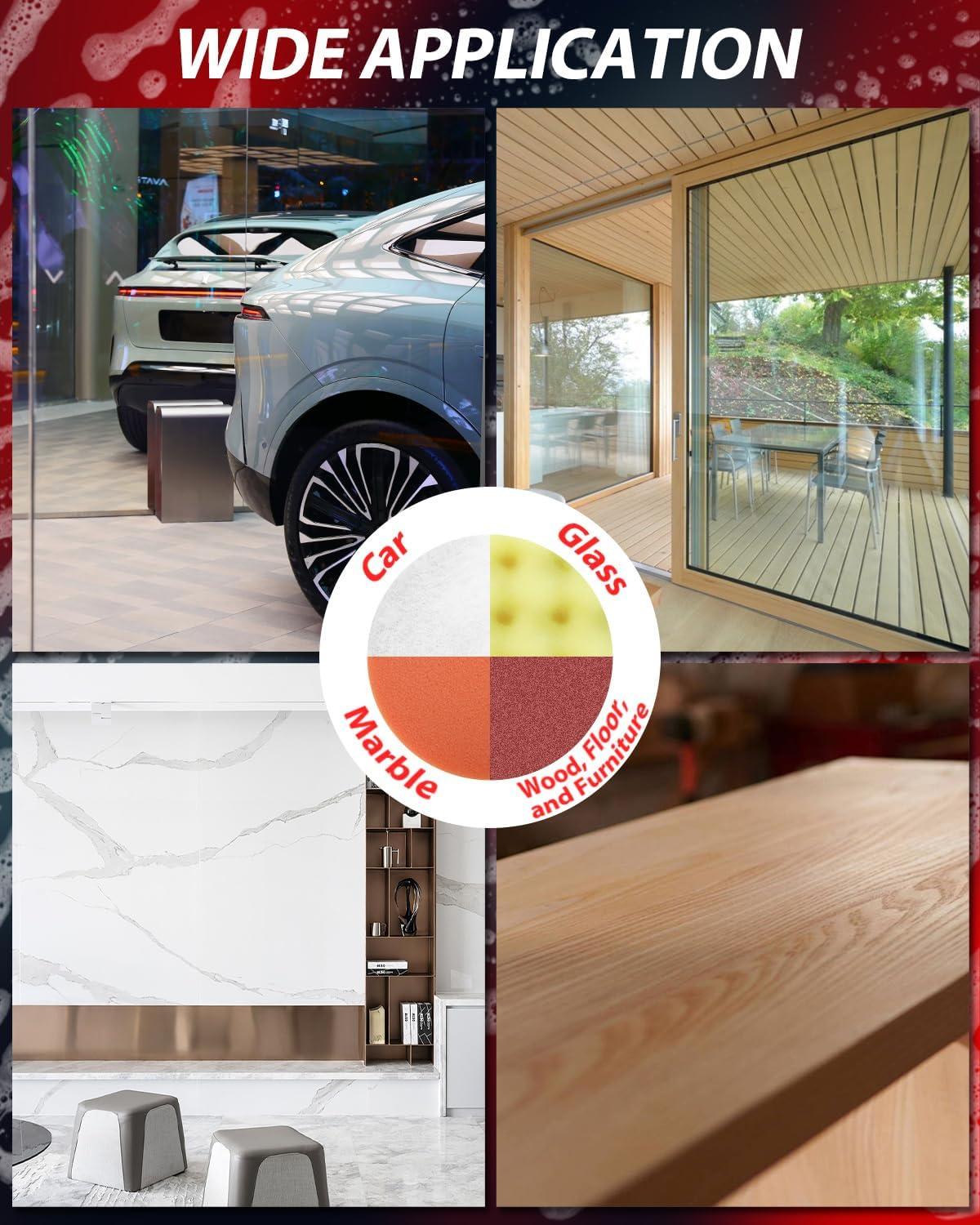 Versatile Multi-Surface Performance Includes 10+ accessories (sanding papers, wool pads, sponge pads) for polishing cars, furniture, marble, and metal. Quick-change Velcro system saves time and enhances workflow efficiency