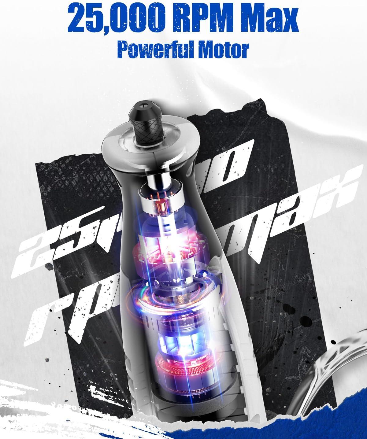 Powerful Motor & 5 Variable Speeds – Built in 8V battery, this handheld rotary tool can generate strong and steady power to accomplish most DIY crafting jobs and dog nails trimming. Variable speeds ranging from 5,000 to 25,000 RPM allow you to adjust the rotation speed for your needs. NOTE: please use 5,000-15,000 speeding setting for dog nail grinding, DON’T use 20,000-25,000 speeding setting for that
