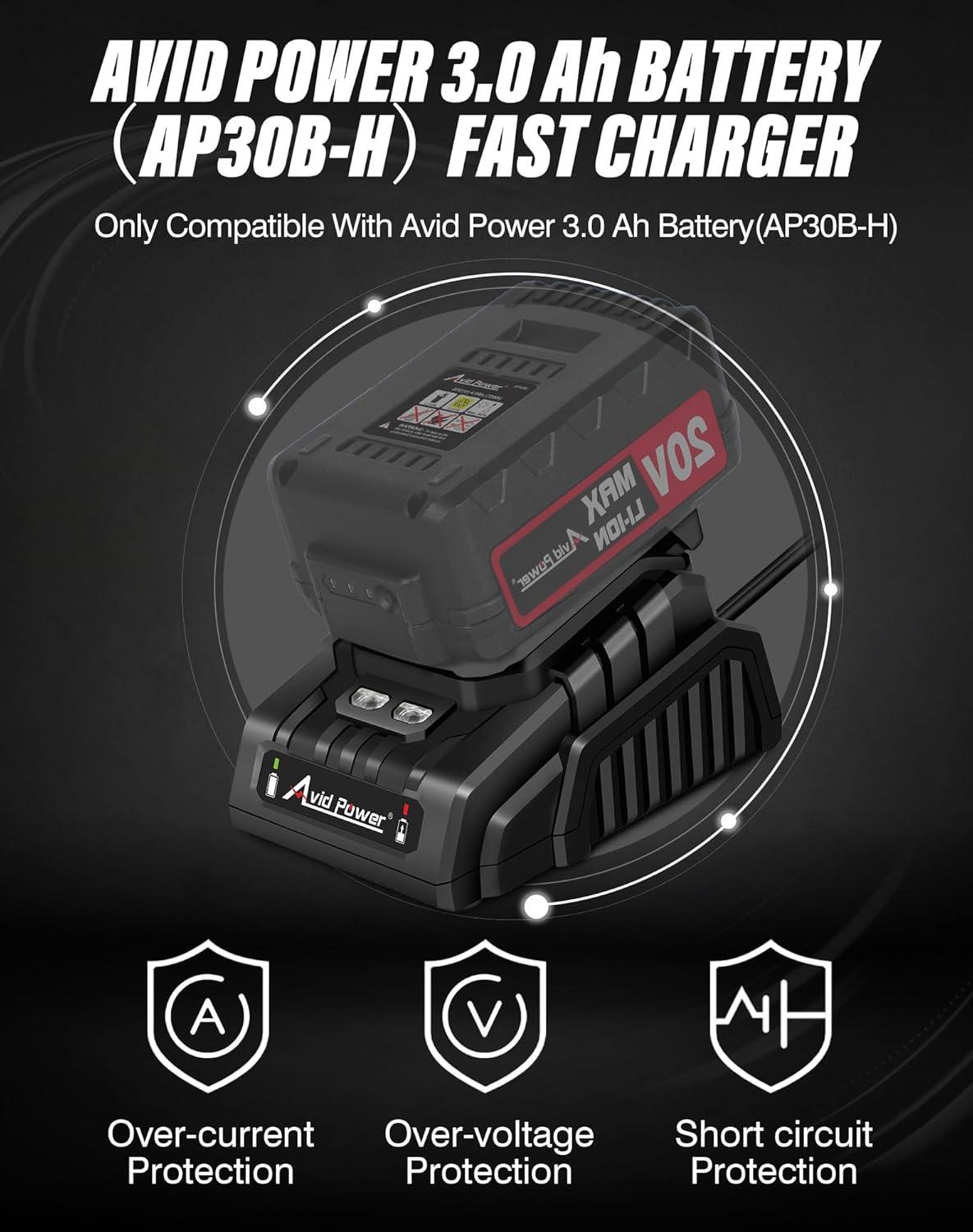 AVID POWER Fast Charger, Only Compatible with The Battery of AVID POWER 330 ft-lbs Torque Impact Wrench ACIW326/ACIW326-B with Serial Number (SN#) A2243 or After That