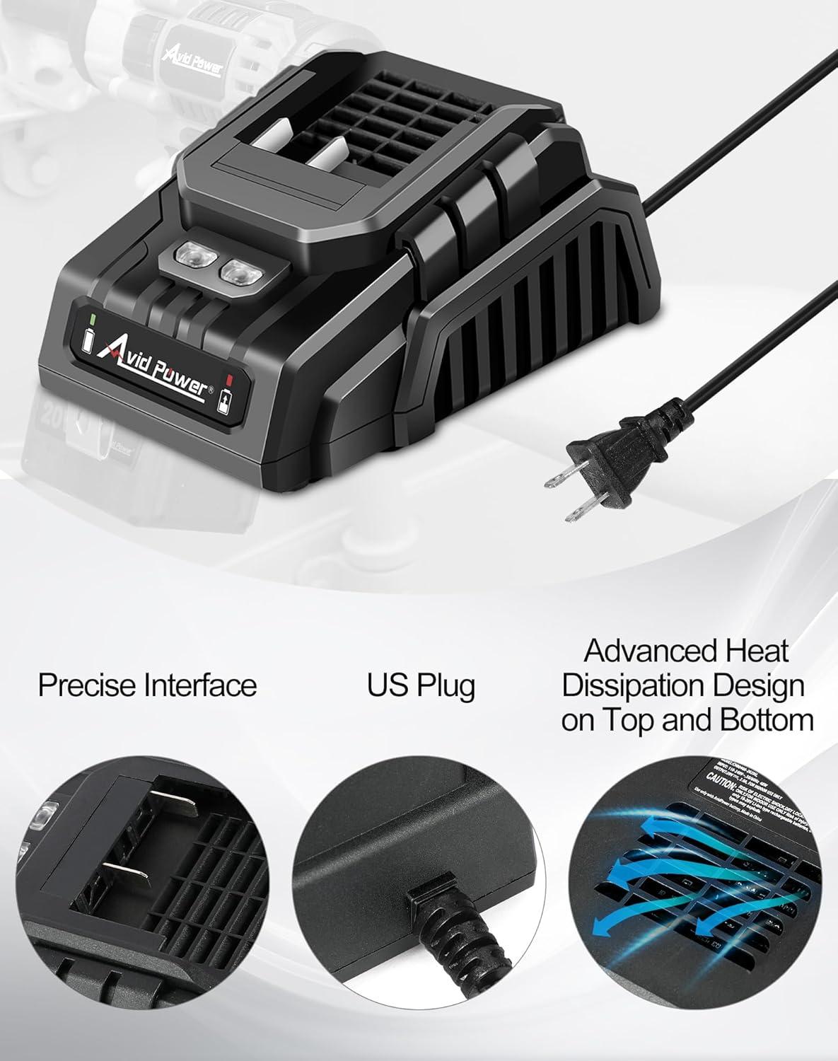 AVID POWER 20V Max Lithium Ion Battery Charger, Only Compatible with Avid Power 20V ACAP110D-Y Batteries