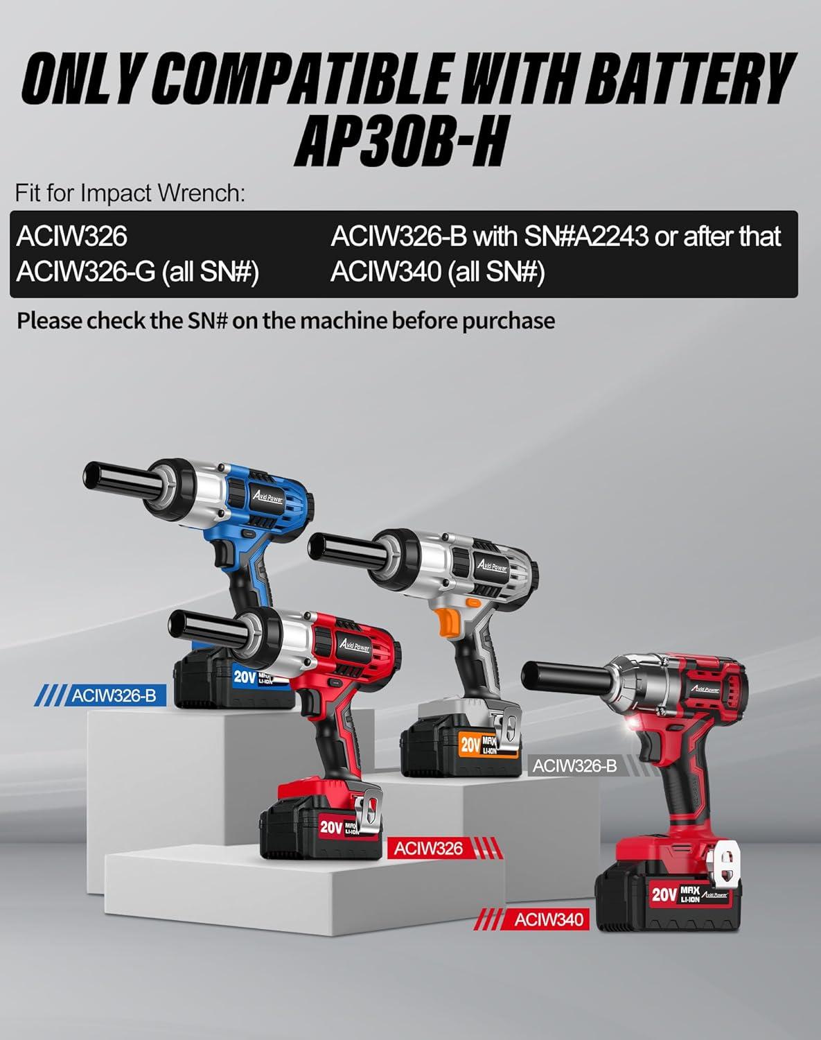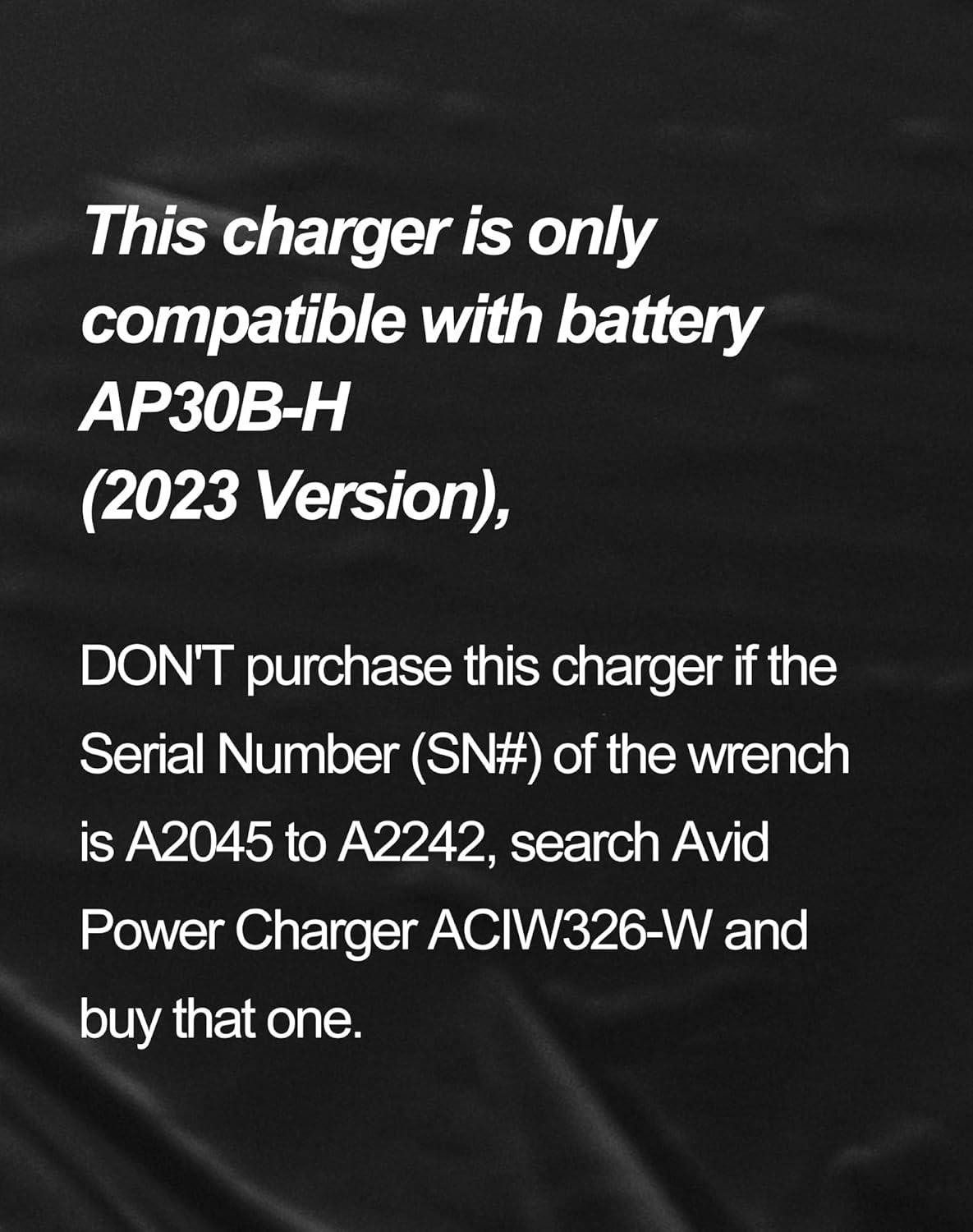IMPORTANT NOTE 2: For impact wrenches ordered during 2021-2022, do NOT purchase this one. Search ‘Avid Power ACIW326-W’ for the appropriate fast charger. Please reach out if you have any concerns