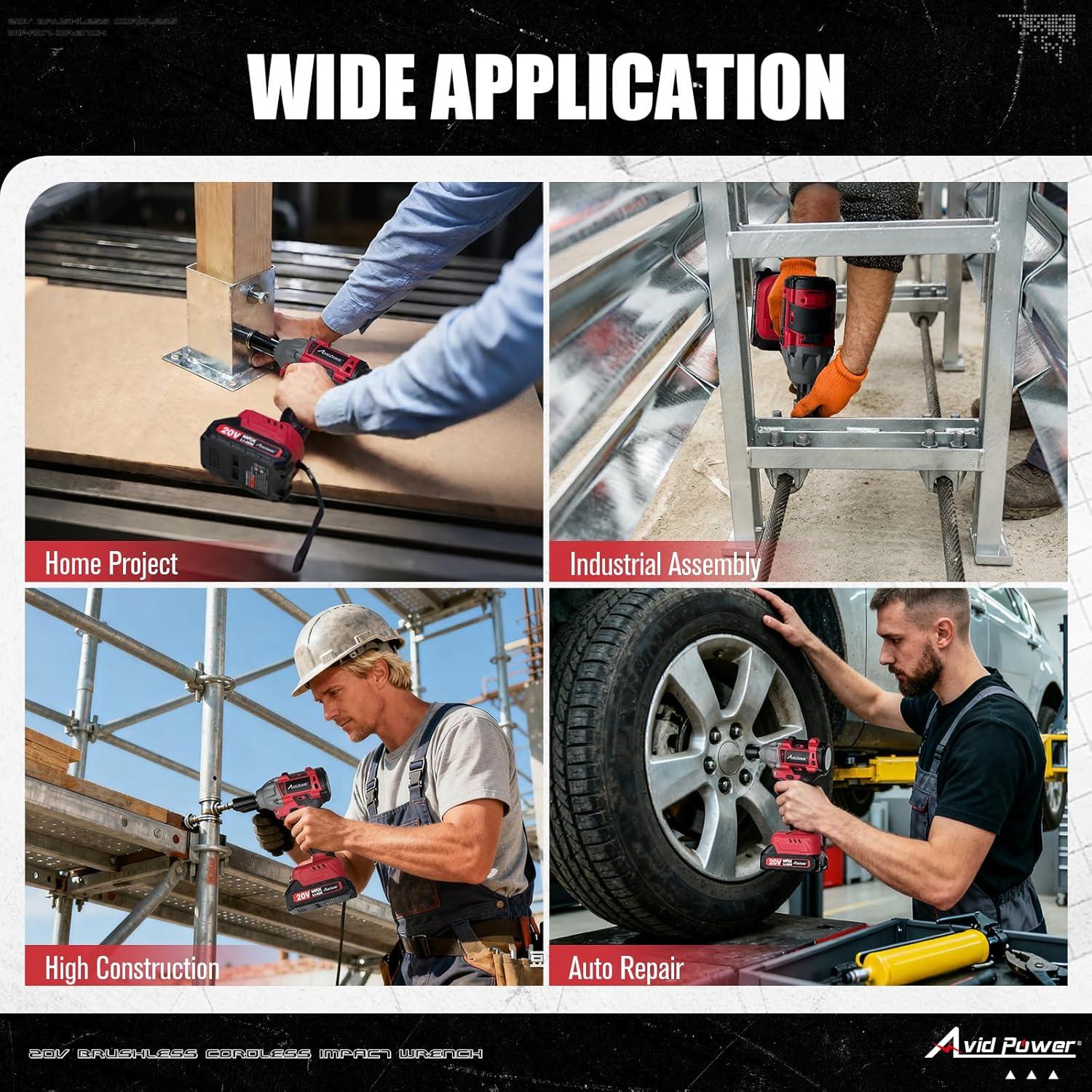 WIDE APPLICATION: The 1/2″ cordless impact driver is more compact, which makes it easy to handle and maneuver, providing excellent control and reducing fatigue during tasks such as repairing car tires, or installing heavy equipment