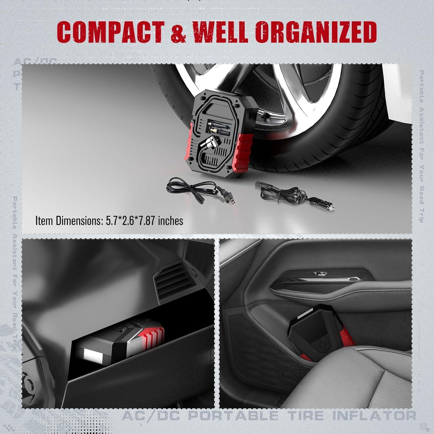 AVID POWER Tire Inflator Portable Air Compressor AC/DC, Automatic Tire Inflator with Gauge, 12V, 110V Small Air Compressor, Portable Air pump for Car Tires, Bikes, Motorcycles, Small inflatables