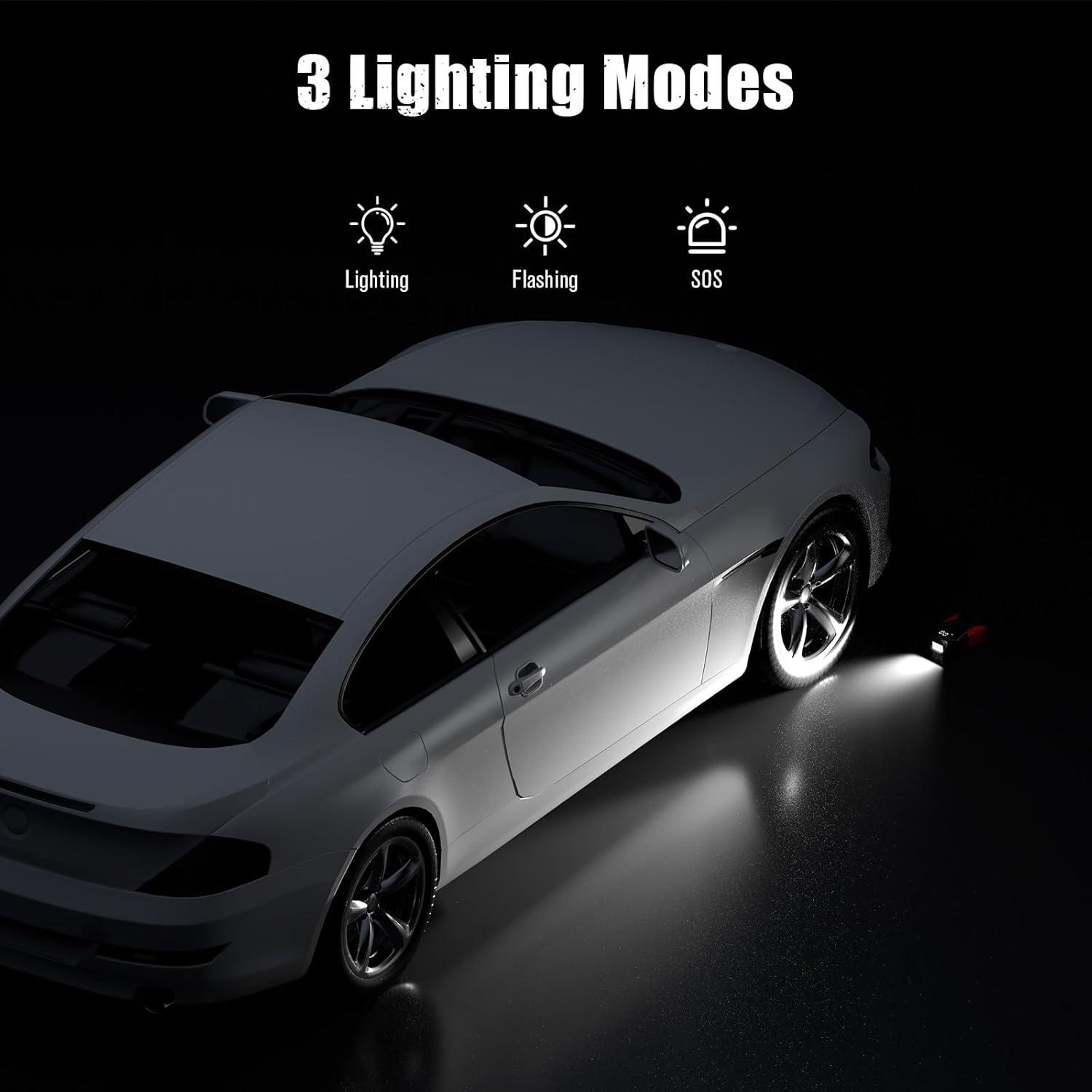 [Easy Reading Digital Gauge & Emergency Light] Features a digital pressure gauge with 4 units (PSI, BAR, KPA, KG/CM) for universal use. Anti-glare screen ensures clear readings. The built-in 3-mode LED light acts as a flashlight for dark conditions and can emit an SOS signal in emergencies
